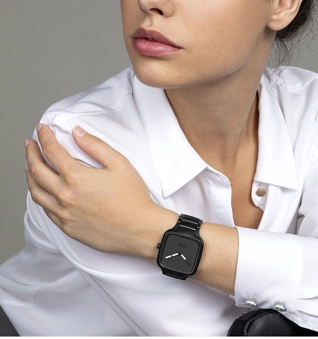 The unique high-tech ceramic case of the True Square provides the appropriate setting and, thanks to its innovative monobloc construction, is ultra-flat at only 9.6 mm high. The matt black PVD-coated titanium back and the smooth, matt black high-tech ceramic bracelet also contribute to the low weight of the watch.